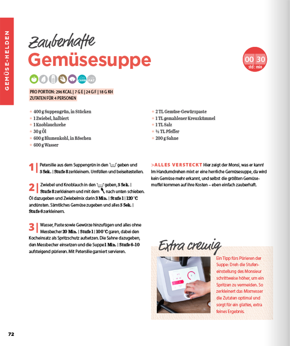 Das ZauberMix EXTRA mit Rezepten speziell für den Monsieur Cuisine enthält exklusiv Rezepte, Tipps und Tricks für die Modelle Connect und Édition Plus. Das Premium-Magazin mit 84 Seiten und über 65 Rezepten bringt jetzt frischen Wind in deine Küche!