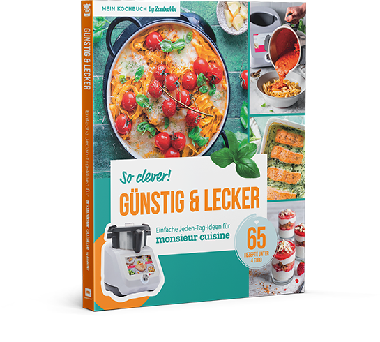 Du möchtest gerne mehr frisch kochen, gleichzeitig aber nicht zu viel Geld ausgeben und stundenlang in der Küche stehen? Dann haben wir genau das Richtige für dich. „Günstig und lecker“ – das neue ZauberMix Kochbuch für den Monsieur Cuisine, das dich mit kreativen und günstigen Rezepten versorgt.
