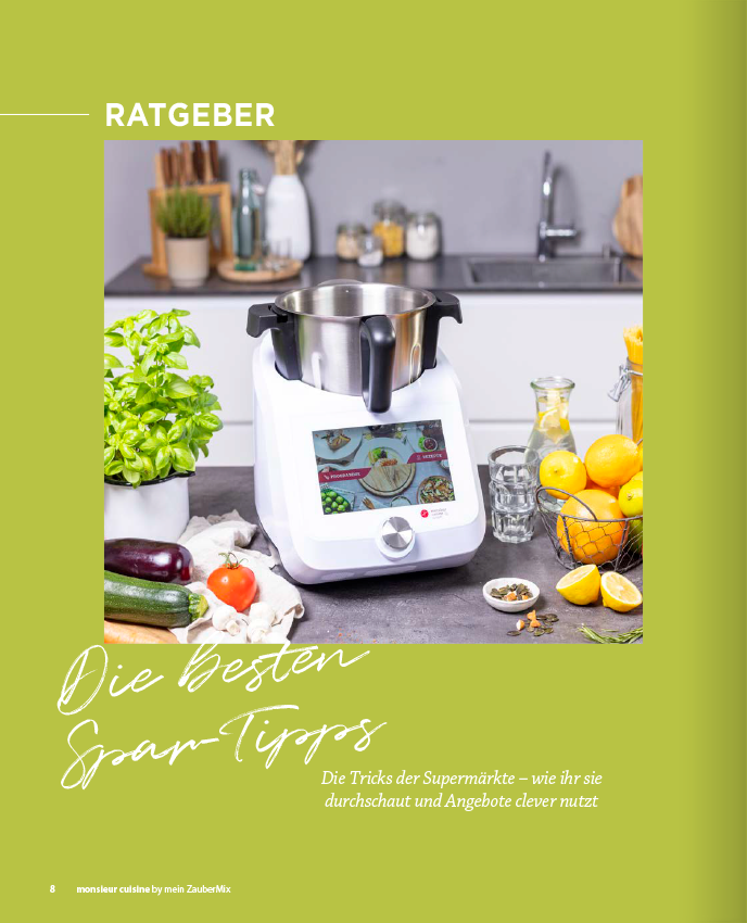 Das ZauberMix EXTRA mit Rezepten speziell für den Monsieur Cuisine enthält exklusiv Rezepte, Tipps und Tricks für die Modelle Connect und Édition Plus. Das Premium-Magazin mit 84 Seiten und über 65 Rezepten bringt jetzt frischen Wind in deine Küche!