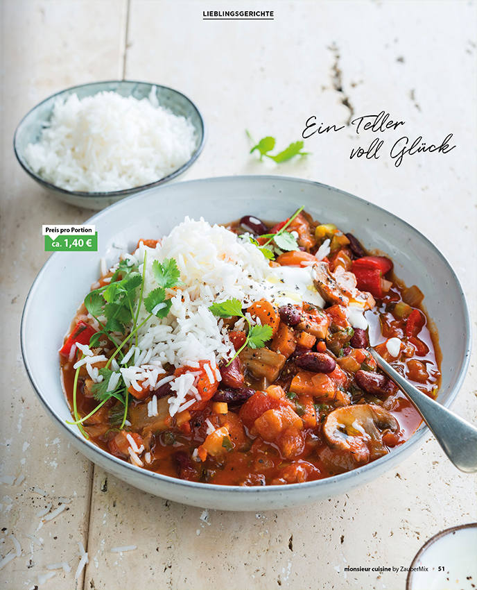 Für die ganz normalen Wochentage zeigen wir dir, wie du deine Familie mit deftigen Hackfleischgerichten, winterlich-wärmenden Suppen mit Kürbis, Kohl und Co. und XXL-Gerichten vom Blech wie Quiche, Pizza und Rösti umsorgst. Sie alle sind im großen 3-Liter-Topf deines Monsieur bequem gekocht. Was für eine Erleichterung!