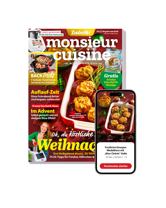 Die neue ZauberMix ist der perfekte Begleiter für eine genussvolle Winterzeit – mit über 85 Rezepten, die Herz und Magen wärmen. Ob schnelle Ideen mit Zwiebeln, Köstlichkeiten für die Feiertage oder kreative Geschenke aus der Küche: In dieser Ausgabe steckt alles, was du für eine entspannte Advents- und Weihnachtszeit brauchst. Entdecke gelingsichere Festmenüs, vielfältige Saucen in der Masterclass, würzige Hähnchengerichte und süße Mitbringsel zum Verschenken. Ob für Gäste, die Familie oder einfach für dich selbst – hier findest du Rezeptideen, die begeistern, satt machen und mit Gelinggarantie glänzen. Jetzt durchklicken und inspirieren lassen!