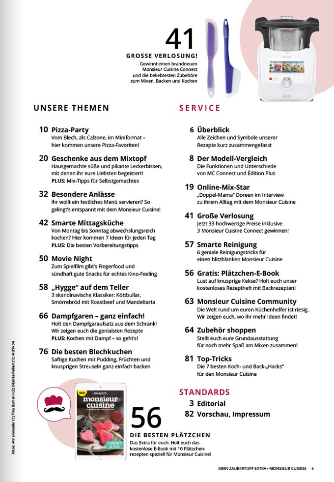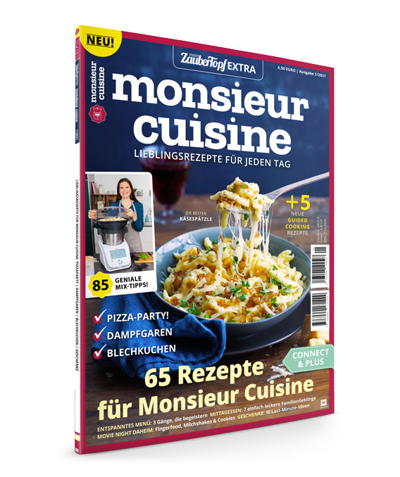 Das ZauberMix EXTRA mit Rezepten speziell für den Monsieur Cuisine enthält exklusiv Rezepte, Tipps und Tricks für die Modelle Connect und Édition Plus. Das Premium-Magazin mit 84 Seiten und über 65 Rezepten bringt jetzt frischen Wind in deine Küche!
