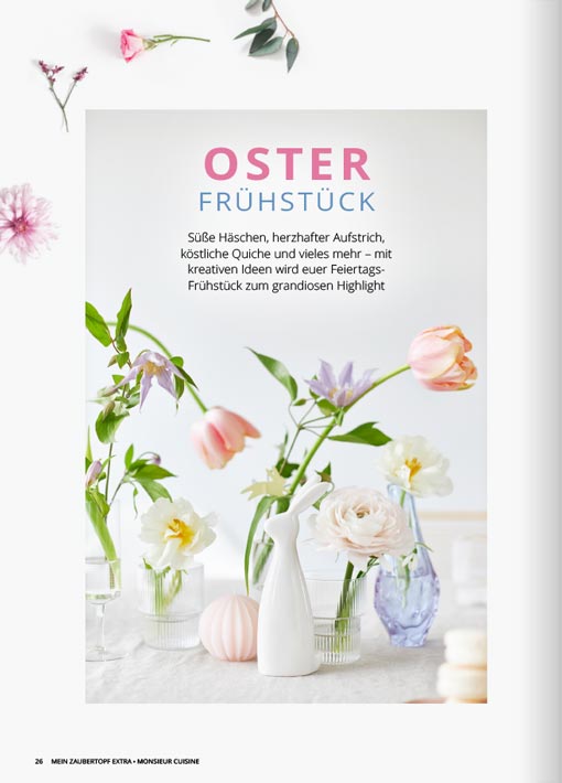 in unserer Redaktion herrscht seit Wochen große Vorfreude! Schon während wir an den Rezepten für diese Ausgabe tüftelten, konnten wir es kaum erwarten, sie dir in dieser neuenAusgabe zu präsentieren. Wir alle arbeiten derzeit weitestgehend im Homeoffice, wie sicher auch viele von euch. Daher haben wir diesen auf den Kopf gestellten Alltag mit so vielHeimarbeit, Kinderbetreuung und kochen daheim natürlich berücksichtigt. Du findestdaher reichlich gute Ideen, wie du im ganz normalen Alltag für Genussmomente sorgst, ohne dass zusätzlicher Stress aufkommt. Mit dabei sind praktische All-in-one-Rezepte, schnelle Mittagsgerichte, einfache Pfannkuchen und Smoothies, die in Sekunden gemixt sind und dich mit einem Glas mit Vitaminen versorgen. Natürlich findest du zudem festliche und süße Ideen für das Osterwochenende sowie unwiderstehliche Spargelrezepte.