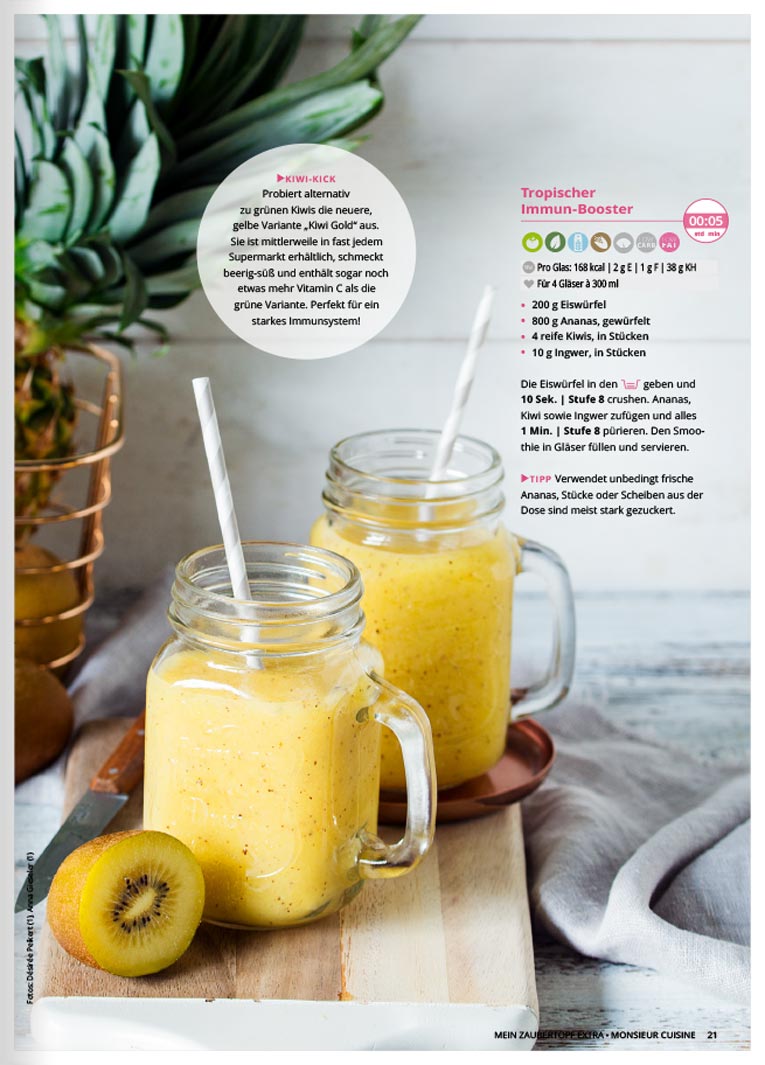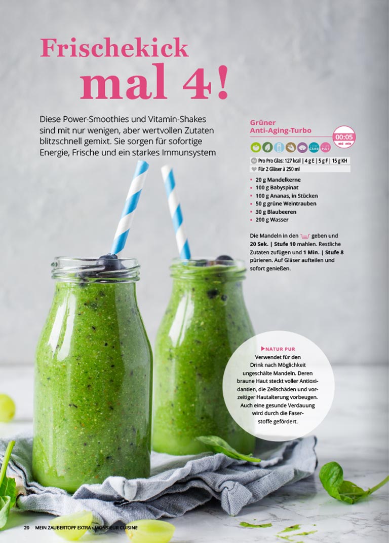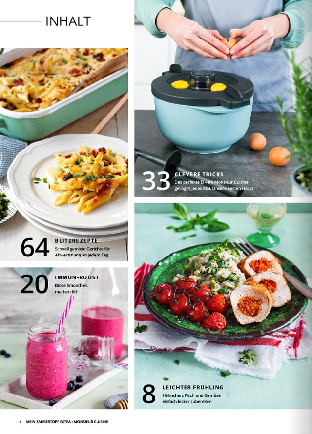 Auf regelmäßig über 80 Seiten Mixspaß zeigen wir dir, wie du blitzschnell leckeres Essen für dich und deine Liebsten zubereitet, wie du deine Gäste zum Staunen bringst oder anderen mit Leckerbissen aus der Küche eine Freue bereiten kannst. Wir zeigen dir, wie du die Funktionen deines Monsieur Cuisine voll ausschöpfst, so dass du im Umgang mit dem Küchenhelfer zum Profi wirst. So geht dir alles noch einfacher von der Hand. Das zukünftig zweimonatlich erscheinende Premium-Magazin liefert dir erprobte und gelingsichere Rezepte und geniales Know-how.