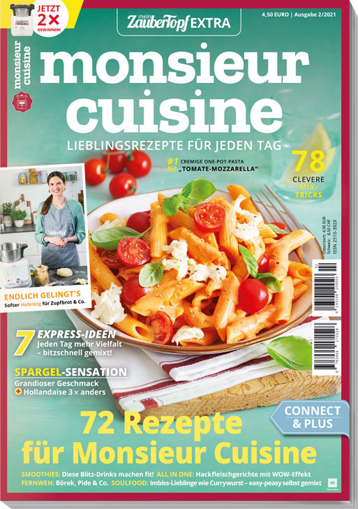 Hier bekommst du Rezepte von mein ZauberTopf ganz exklusiv für den Monsieur Cuisine. Alle Rezepte gelingen mit beiden Modellen: Monsieur Cuisine Connect und auch Édition Plus. mein ZauberTopf steht für mehr Vielfalt. Frische, saisonale Rezepte, die neuesten Food-Trends und die besten Tipps und Tricks rund um die Gerätenutzung stehen Ausgabe für Ausgabe im Vordergrund.