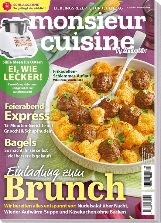 Hier bekommst du Rezepte von mein ZauberTopf ganz exklusiv für den Monsieur Cuisine. Alle Rezepte gelingen mit beiden Modellen: Monsieur Cuisine Connect und auch Édition Plus. mein ZauberTopf steht für mehr Vielfalt. Frische, saisonale Rezepte, die neuesten Food-Trends und die besten Tipps und Tricks rund um die Gerätenutzung stehen Ausgabe für Ausgabe im Vordergrund.