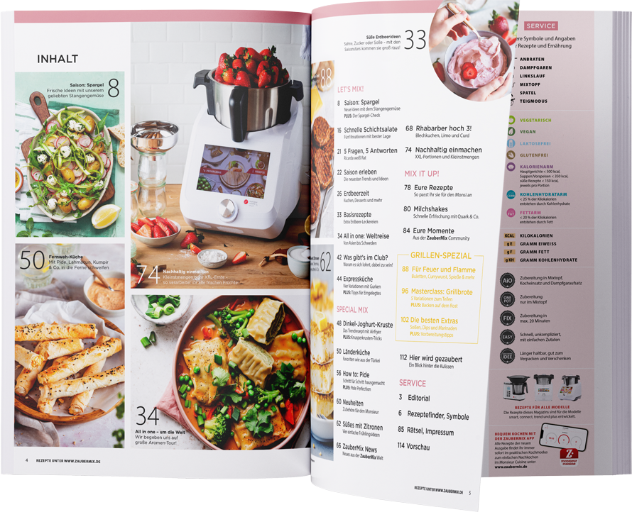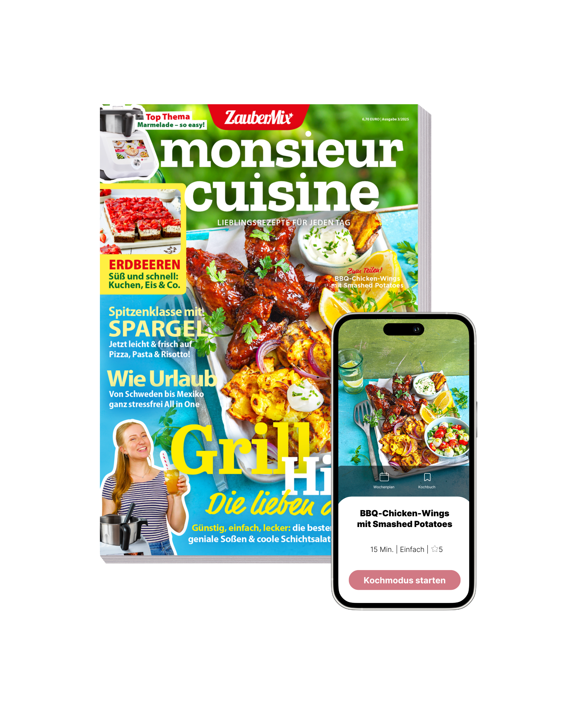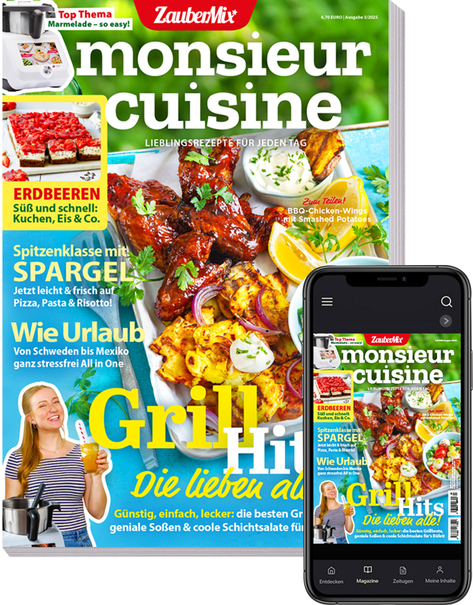 Mit der neuen Ausgabe von Monsieur Cuisine 3/2025 erwartet dich eine bunte Sammlung an über 85 Rezepten, die perfekt zur warmen Jahreszeit passen. Genieße kreative Ideen mit Spargel, fruchtige Erdbeer-Highlights, praktische Schichtsalate, internationale Gerichte aus einem Topf und das große BBQ-Special – alles einfach und entspannt mit deinem MC!