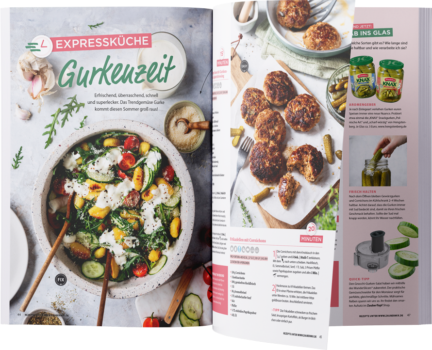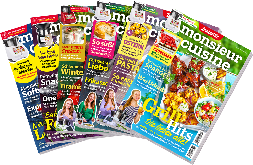Auf regelmäßig über 80 Seiten Mixspaß zeigen wir dir, wie du blitzschnell leckeres Essen für dich und deine Liebsten zubereitet, wie du deine Gäste zum Staunen bringst oder anderen mit Leckerbissen aus der Küche eine Freue bereiten kannst. Wir zeigen dir, wie du die Funktionen deines Monsieur Cuisine voll ausschöpfst, so dass du im Umgang mit dem Küchenhelfer zum Profi wirst. So geht dir alles noch einfacher von der Hand. Das zukünftig zweimonatlich erscheinende Premium-Magazin liefert dir erprobte und gelingsichere Rezepte und geniales Know-how.