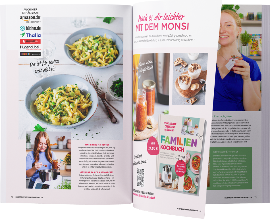 Das ZauberMix Extra speziell für den Monsieur Cuisine enthält Rezepte und Mix-Tricks für die Modelle Connect und Édition Plus. Das Premium-Magazin mit 84 Seiten, 70 Rezepten und 44 Tipps bringt Spaß und Abwechslung in deine Küche!