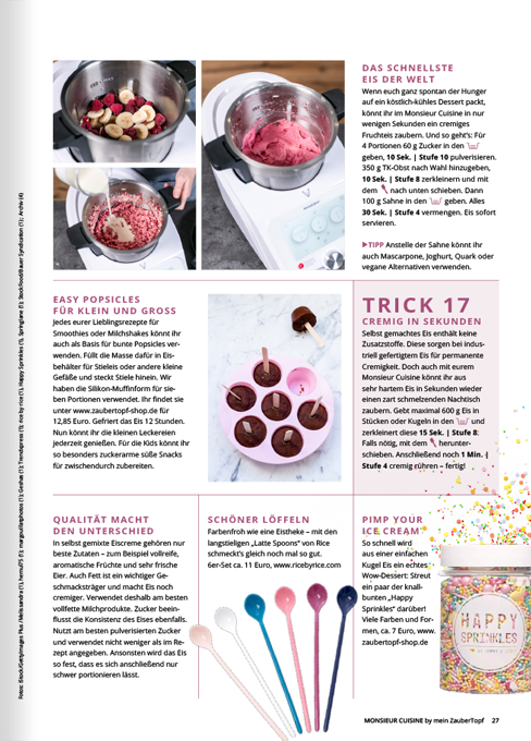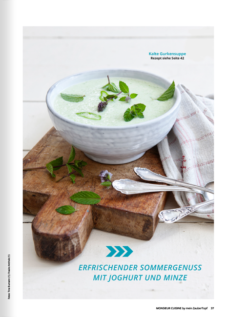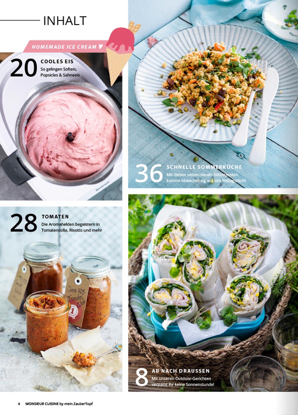 Pünktlich zum Hochsommer findest du in der monsieur cuisine by ZauberTopf auf hundert Seiten 65 erfrischende Rezeptideen für entspannte Momente.