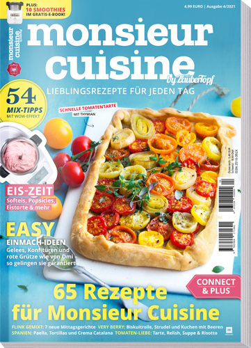 Hol dir jetzt die neue Ausgabe monsieur cuisine by ZauberTopf 4-21 – sie ist ab sofort im Onlineshop, als Einzelheft, im Abo oder natürlich auch überall im Handel erhältlich.