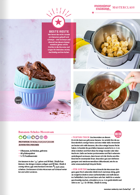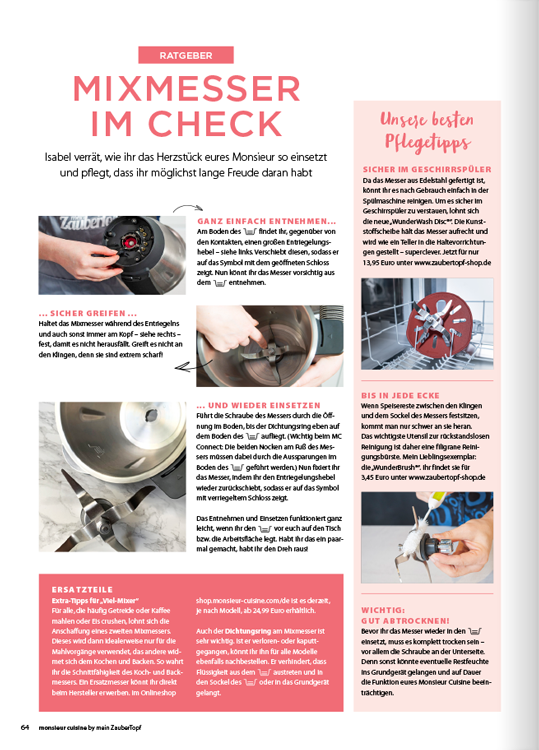 Auf regelmäßig über 80 Seiten Mixspaß zeigen wir dir, wie du blitzschnell leckeres Essen für dich und deine Liebsten zubereitet, wie du deine Gäste zum Staunen bringst oder anderen mit Leckerbissen aus der Küche eine Freue bereiten kannst. Wir zeigen dir, wie du die Funktionen deines Monsieur Cuisine voll ausschöpfst, so dass du im Umgang mit dem Küchenhelfer zum Profi wirst. So geht dir alles noch einfacher von der Hand. Das zukünftig zweimonatlich erscheinende Premium-Magazin liefert dir erprobte und gelingsichere Rezepte und geniales Know-how.