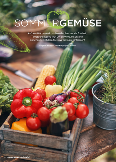Die lässigen Gerichte für das Mittagessen im Schatten und die lauen Sommerabende auf der Terrasse leuchten geradezu – kein Wunder, gibt es doch überall gerade so farbenfrohes, aromatisches Gemüse! Wir kochen ganz simpel, aber effektvoll mit Tomaten, Zucchini, Karotten und reichlich frischen Kräutern. Was an Gemüse und Obst übrig bleibt, wird eingekocht. Im Spezial findet ihr die passenden Rezepte für Leckereien im Glas.