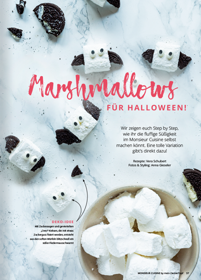 es ist Zeit für neue Experimente in der Küche! Jetzt im Herbst sind wir ohnehin mehr im Haus und die Abende lassen mehr Muße zum Kochen und Backen. Ich freue mich darauf, in diesem Herbst mein persönliches Brot-Repertoire zu erweitern – als Allererstes mit Baguettes und unserem Nimmersatt-Brot. Außerdem kann ich es kaum erwarten, die pikanten Soßen einzukochen. Die werde ich dann mit den hübschen Anhängern, die du auch in dieser Ausgabe findest, in meine Vorratskammer stellen, um mir in den nächsten Wochen genüsslich schnelle, richtig gute Mittagessen zu gönnen. Am meisten freue ich mich darauf, eine große Portion Marshmallows zuzubereiten. Denn davon habe ich schon den Nachbarn erzählt und versprochen, die softe Leckerei zum Lagerfeuer mitzubringen.